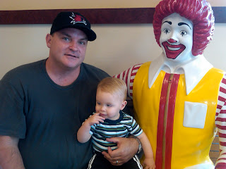 Dadda and I were out running a bunch of errands early this morning, and decided to stop at McDonald's for breakfast. We sat by the children's area, and got to watch small bunches of kids chase each other between bites of their breakfasts. It made me ask the question, "Can you imagine how different things would be if we had Peanut here?" We both got quiet and sad for a moment, but were lifted by memories of the first time we took you to McDonald's.
